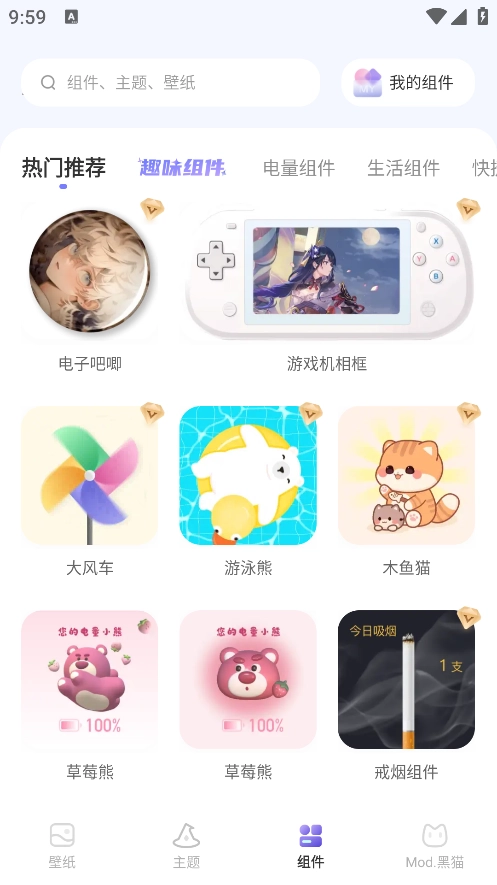 壁纸酷怎么设置组件?