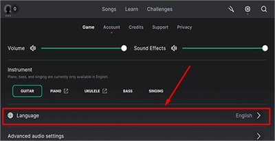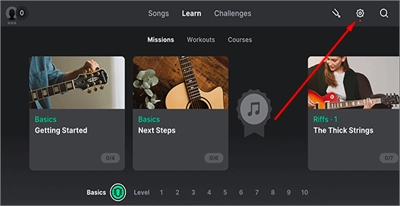 1. 打开Yousician,初始语言为英文,点击右上角的“齿轮”图标进入设置界面。