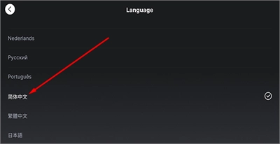 3、在语言选择页面找到“简体中文”并点击,其后面有个“√”再点击返回即可设置成功。