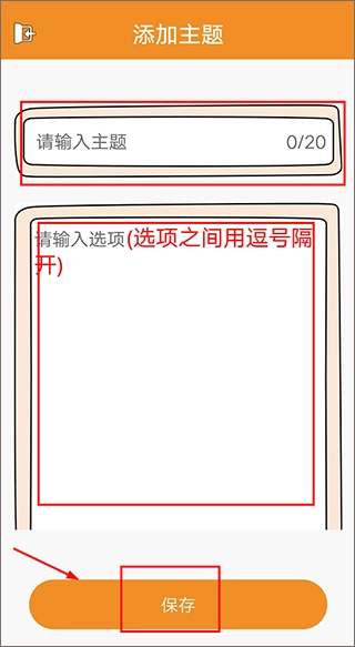 2、于【添加主题】页面录入你感到纠结的问题,录入完毕后,点击保存就行。