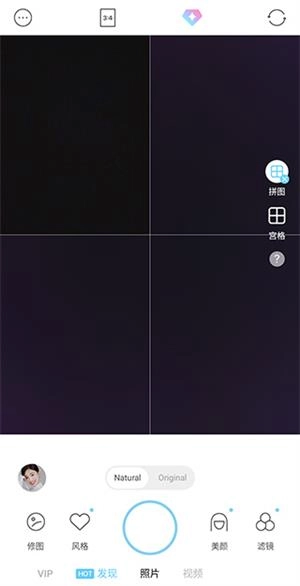 2、点击后可以看到界面分成了四个窗口,拍4张照片后就可以进行拼图了。