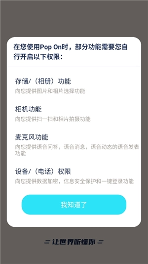 1、在本页面Pop On软件,安装后打开并同意隐私政策