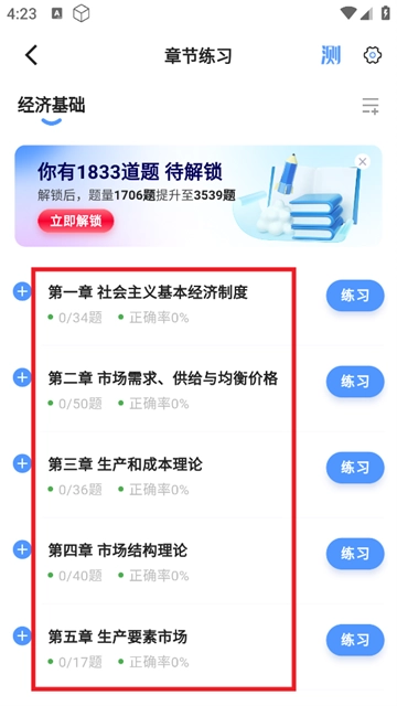 3、挑选自己所需练习的章节,点击进行练习即可。