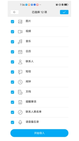 步骤3:挑选需要迁移的数据类型,稍作等待,文件就能顺利完成传输。