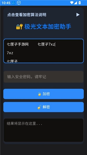 文本加密工具堪称一款极为专业且值得信赖的文件加密与解密利器。当用户日常接收到带有密码的资料时,借助这款工具就能轻松解开。同理,要是手中持有重要文件,不希望其泄露机密,使用它一键加密,便可有效提升文件的安全性。该软件界面设计简洁,操作更是便捷无比。喜爱这类工具的小伙伴们,快来试试文本加密工具吧!