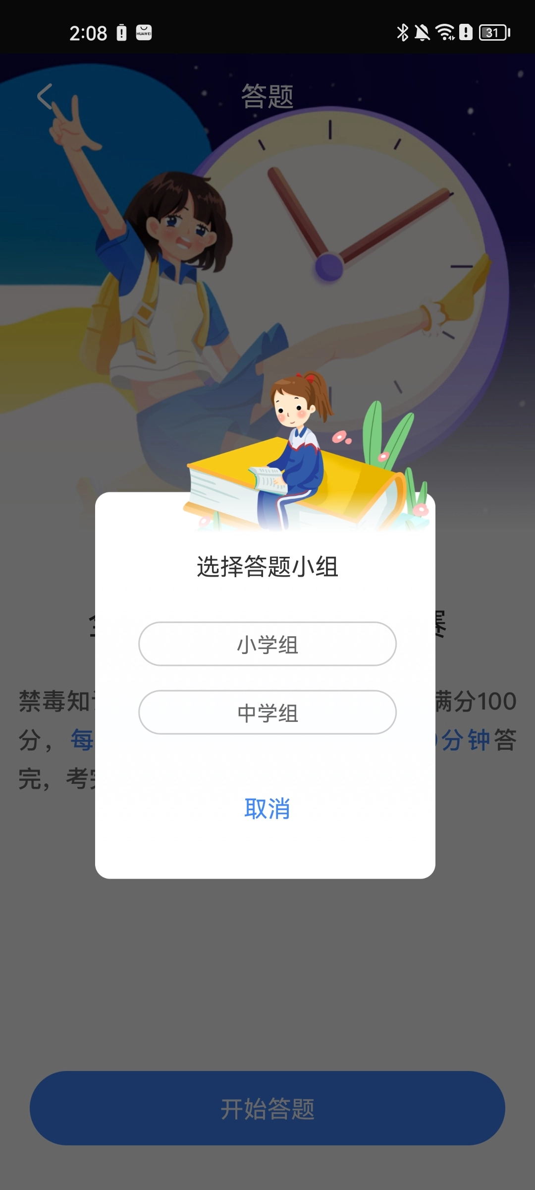 ②开始答题选择【小学组】或者【中学组】