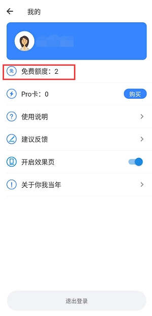 1.可以本页面的你我当年,登录获得,用户每天进行你我当年软件的登录,就能免费获得软件的额度,一天是可以获得免费额度*2;