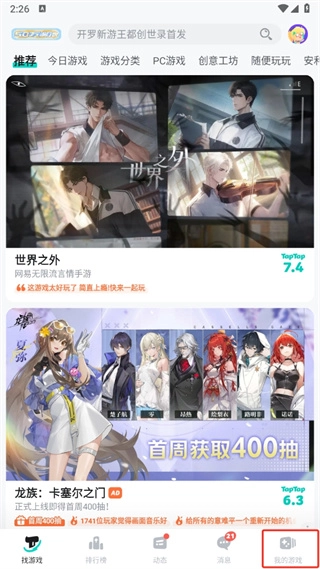 1、首先打开taptap软件,进入到首页中后点击右下角的【我的游戏】;
