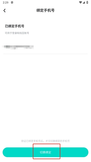 6、最后来到绑定手机号的页面中,点击下方的【切换绑定】验证一下,绑定新的手机号即可;