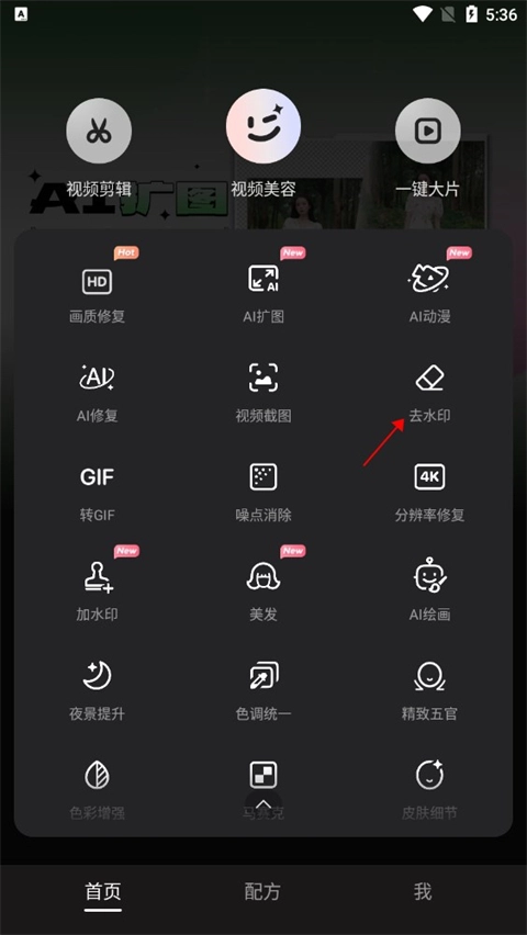 1、在首页寻找到去水印的按钮并点击。