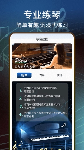 1、零基础的成人也能轻松学习。借助本应用,您能够精准学习钢琴、古筝、吉他等各类基础课程以及乐理知识,真正实现寓教于乐!
