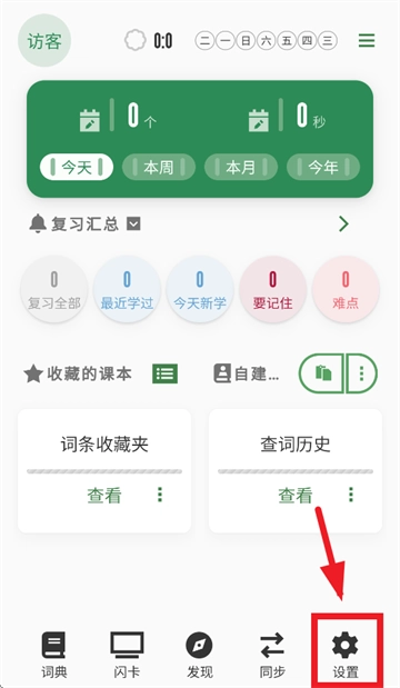 安装并打开易呗单词,进入词典首页后点击设置