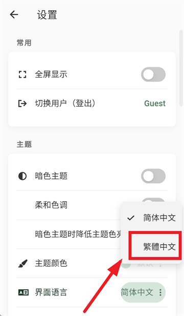 点击繁体中文即可
