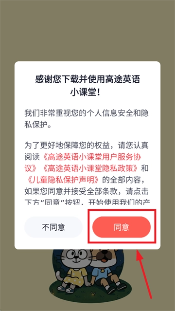请安装并打开高途英语小课堂,首先请同意相关条款后,即可使用高途英语小课堂啦!【提醒界面】