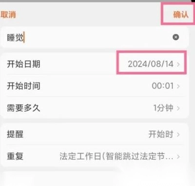 3. 在编辑界面,选定任务的起始日期,点击【确认】按钮就可以了。