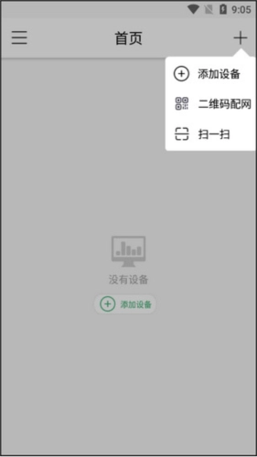 2、点击首页右上角的加号,可以看到添加设备的选项,主要就是这个功能;