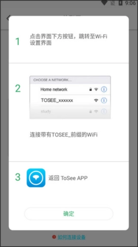 4、设备那边正常搞好,再来手机这里连接专用的wifi,看好是带有tosee前缀的哦!