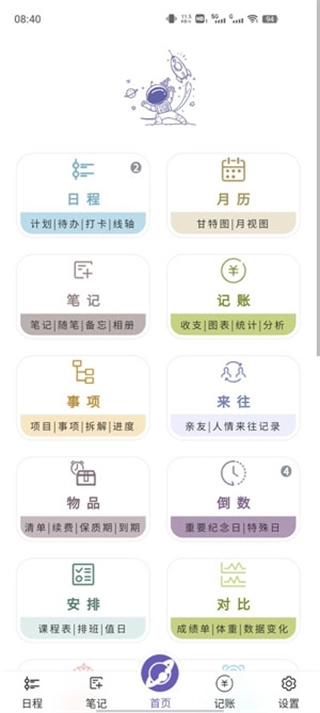 土星计划是一款极为实用的日程管理清单类工具软件。借助这款软件,你能够添加一天的日程安排,更合理地规划个人时间,标注对应的日期。同时,无论何时何地,都能随时记录灵感,并添加专属笔记。土星计划具备笔记、记账、备忘录、日程表等诸多功能,数据实现云端同步存储。每天的待办事项会以图表形式呈现,清晰明了,用户查询起来十分便捷。