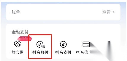3、进入钱包页面,点击【抖音月付】。