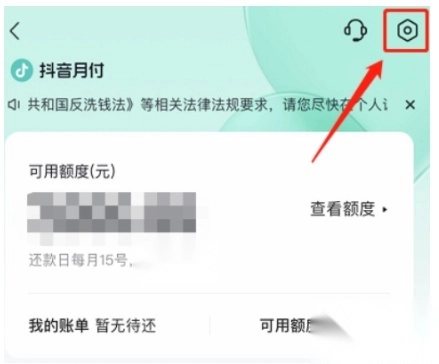 4、进入抖音月付页面,点击右上方的“正六边形”图标。