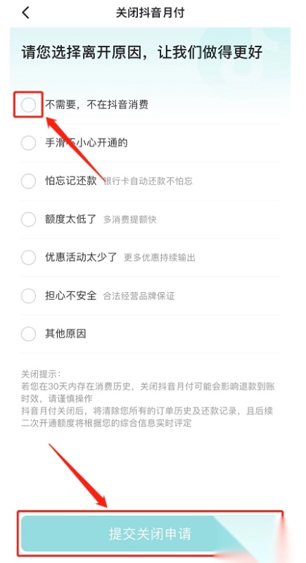 6、直接点击【关闭抖音月付】。