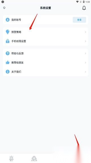2、进入系统设置,选择预警策略;