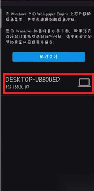 1. 让手机与电脑接入同一个网络,接着开启wallpaper手机版,点击与计算机配对。