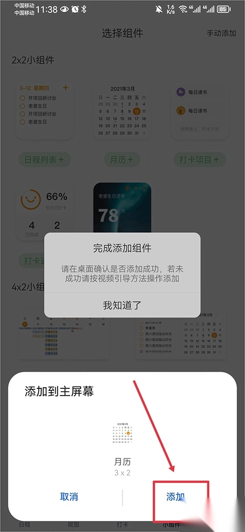 在手机桌面上直接使用月视图小组件,会更加便捷。