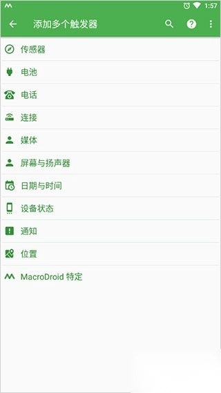 2、软件具备众多可实现的功能,比如插入耳机时自动开启指定软件播放音乐、设备登录失败时自动抓拍并播放音频、调用网络API以及解析json,还能依据地点和时间执行不同操作等。若要创建一项基础功能,需依次完成3个步骤,即设置MacroDroid的触发器、动作以及例外条件。