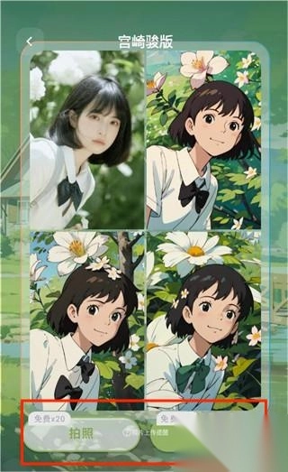 5、既能够当场拍照,也可以选择导入照片,随后一键就能生成具有宫崎骏动画风格的照片。
