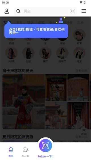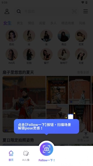 【精选场景】首页有大量热门场景Pose推荐,无论何时何地,都能轻松拍出潮流大片!