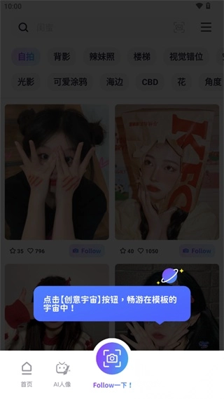 1、在本站并安装Follow相机后,进入应用,点击最下方导航栏“Follow一下!”