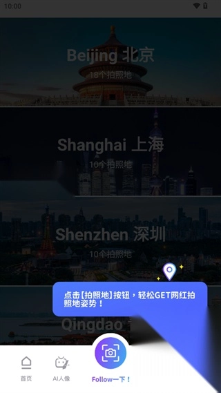 7、轻点“拍照地”按钮,便能轻松知晓网红拍照地的姿势。