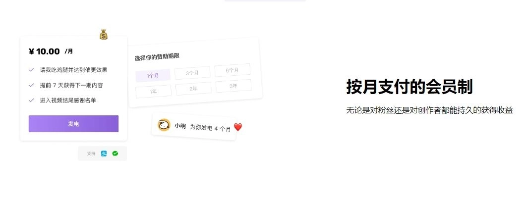 2、粉丝与创作者能够借助平台获取收益。