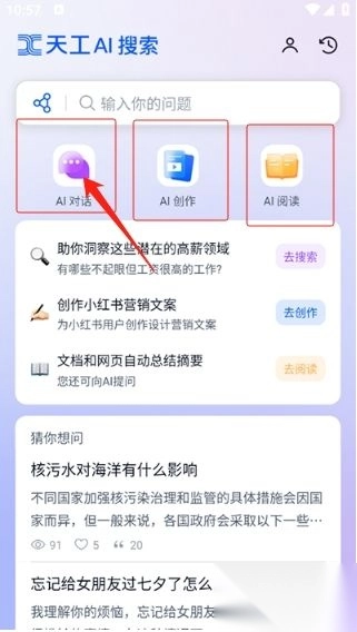 2、这里提供了AI对话、AI创作和AI阅读功能,这里选择AI对话作为实例。