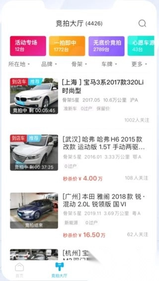 4、然后进入竟拍大厅浏览车源