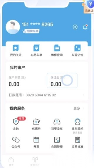 2、随后,需要充值保证金才能够进行正常的拿车操作流程。