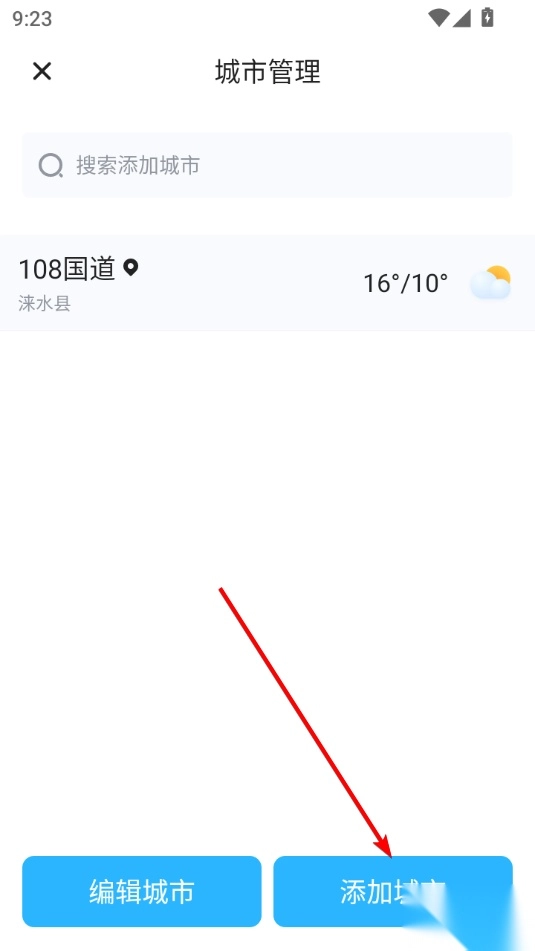 2、点击添加城市