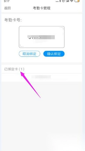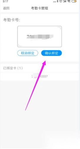 4、确认绑定信息:扫描成功后核对卡号,确认无误点击【绑定按钮】,完成关键确认 。