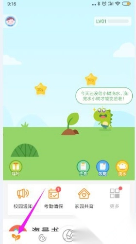 1、绑定入口开启方式:登录孩子通家长版主界面后,点击左下角的【成长记】,即可进入绑定操作的第一步。