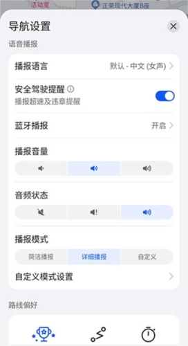 4、来到导航设置界面后,我们就可以设置语音播报的各种提示。