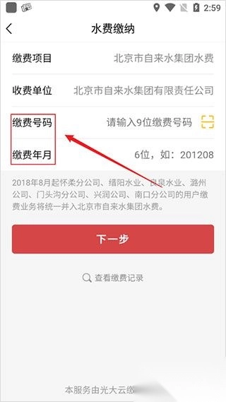 5、最后点击“下一步”,就能进行水费支付了。