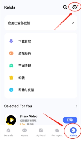 无需担忧,我们还有智能更新提醒功能呢!仅需在【Kelola】界面的右上角选取【设置】。