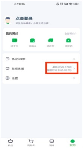 2、找到“联系客服”,拨打电话咨询药店入驻事宜。