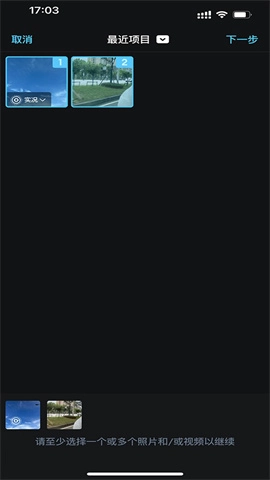 2、随后要挑选若干照片,至少挑选一到两张,挑选完成后点击“下一步”。