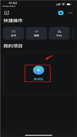 1、在splice视频编辑软件中点击“+”来创建新的项目。