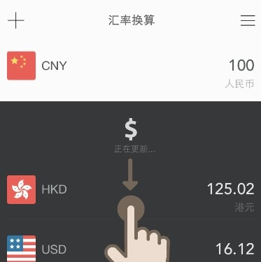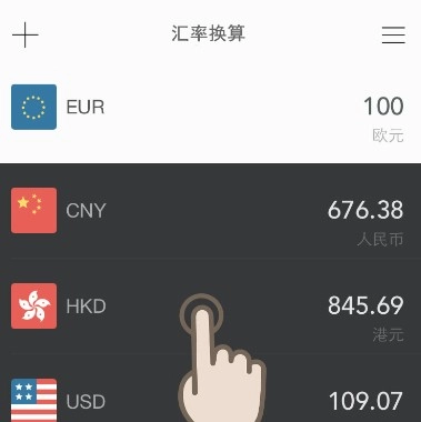 在货币列表上向左滑动可查看历史汇率或删除货币