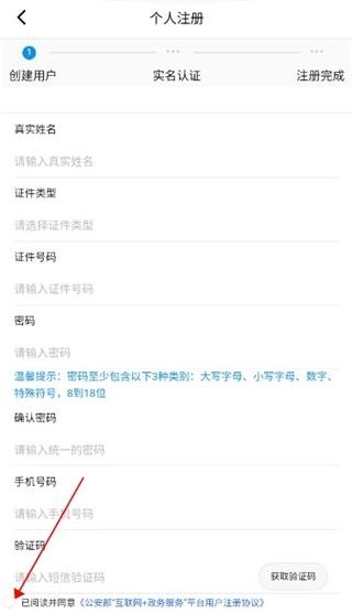 2、同意注册协议,然后填写个人信息点击“提交”;