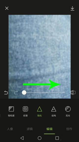 5、优化完毕以后向左滑动工具栏,然后点击“锐化”。
