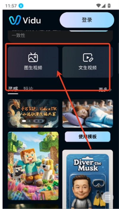 2. 开启软件,在首页界面挑选“图生视频”或者“文生视频”功能。
